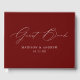 Elegant wedding guestbook featuring "Guest Book" displayed in a modern white calligraphy script on a rusted burgundy background. Personalize the front of the simple wedding guest book with your names and wedding date. The back of the burgundy guest book displays your monogram initials. Add your married name and wedding date to the spine of the guest book.