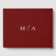 Elegant wedding guestbook featuring "the wedding of" displayed in a modern white calligraphy script on a rusted burgundy background. Personalize the front of the simple wedding guest book with your names and wedding date. The back of the burgundy guest book displays your monogram initials. Add your married name and wedding date to the spine of the guest book.