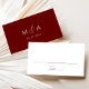 Modern wedding place cards featuring a dark red/burgundy calligraphy script on the front with a white background. The back of the place cards feature your monogram initials and your wedding date shown below in white lettering on a burgundy background. The elegant script place cards are perfect for modern wedding receptions, rehearsal dinners, and other special events.