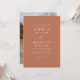 Plain white envelopes are included with paper invitations and will come to fit the invitation size you select. If you don’t need the envelopes, you may choose to not receive them by selecting the dropdown below "Envelopes" and choosing "None." If you’d like to have a design on your envelopes, you can browse all of these available envelopes to find the design that complements your Modern Elegant Script Clay Wedding Invitation.