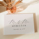 Elegant wedding guestbook featuring "Mr. and Mrs." displayed in a modern black calligraphy script on a cream background. Personalize the front of the simple wedding guest book with your last name and wedding date. The back of the cream guest book displays your horizontal engagement photo. Add your married name and wedding date to the spine of the photo guest book.