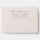 Simple, modern wedding envelopes featuring "the wedding of" displayed in an elegant black calligraphy script on a cream background. Personalize the envelope flap with your names and return address.