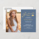 Modern Elegant Script Dusty Blue Gold 2 Photo Grad Postcard