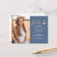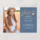 This double sided 2 photo stylish graduation announcement or thank you postcard, features modern text fused with elegant calligraphy script in gold color and white on dusty blue. Photos are one on the front and one on the back. To see more items like this, visit my store here at "www.Zazzle.com/LakeViewCardCo". Thanks