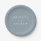 Modern Elegant Script Dusty Blue Wedding Paper Plates