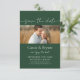Modern Elegant Script Emerald Green Save the Date Monogram Invitation. This one photo invite is the perfect combination of simple elegance and minimalist design features with one photo to commemorate your special day. Monogram on the back and minimal emerald green and white design for your wedding, anniversary or special occasion.