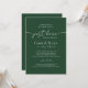 Plain white envelopes are included with paper invitations and will come to fit the invitation size you select. If you don’t need the envelopes, you may choose to not receive them by selecting the dropdown below "Envelopes" and choosing "None." If you’d like to have a design on your envelopes, you can browse all of these available envelopes to find the design that complements your Modern Elegant Script Emerald Green Wedding Invitation.