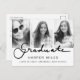 Modern graduation photo postcard featuring a calligraphy Graduate script on a white gradient background that will make the text pop. Suitable for the high school or college graduate. Can be used as a graduation thank you card or grad party invitation. Go to customize further to personalize your own photo collage.