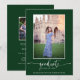 Modern Elegant Script Graduation Photo featuring elegant handwritten script along with a full sized photo on the front and a square photo on the back. This one is modern dark or forest green, but all text and colors are fully customizable - perfect for your simple elegant graduation announcements. Please contact us at cedarandstring@gmail.com if you need assistance with the design or matching products.