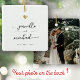 Modern wedding ornament with your custom names in elegant swirly script calligraphy alongside a printed gold heart and the date of your celebration. On the back is space for your favorite photo of the nultials. This is the minimalist black and white version. Great keepsake gifts for newlyweds!
