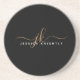 Modern Elegant Script Monogram Initials Black Gold Coaster