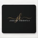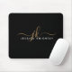 Modern Elegant Script Monogram Initials Black Gold Mouse Pad