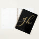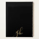 Modern personalized spiral planner with stylish elegant calligraphy script initials or monogram and name in your choice of colors (shown in faux gold and white against an editable black background). CHANGES: The text font style, color, size, spacing and placement can be changed by clicking on EDIT in the PERSONALIZE section for a custom look. PLANNER OPTIONS: Choose hard or soft cover and wire color on the ordering page. ASSISTANCE: For help with design modification or personalization, color change, resizing, transferring the design to another product or if you would like coordinating items, contact the designer BEFORE ORDERING via the Zazzle Chat MESSAGE tab below or email makeitaboutyoustore@gmail.com.