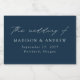 The modern wedding sparkling wine labels feature the phrase "the wedding of" displayed in an elegant white calligraphy script on a navy background. Personalize the navy sparkling wine labels with your names, wedding date, and wedding location. The simple wedding sparkling wine labels are perfect to use for wedding receptions, rehearsal dinners, and engagement parties.
