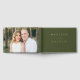 Elegant wedding guestbook featuring your names and wedding date in gold foil lettering with an olive green background. Personalize the spine of the simple wedding guest book with your married name and wedding date. The back of the olive green and gold foil wedding guest book displays your horizontal photo.