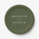 Modern Elegant Script Olive Green Wedding Paper Plates