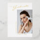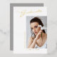 This real foil, modern elegant graduation announcement card, features design elements of modern text fused with elegant calligraphy script. The graduates horizontal photo is artfully placed on the front of the card while the back of the card offers personalized text spaces for information about the graduation and future journey. Backgrounds are white on the front and silver gray on the back or easily customize them to colors of your choice. To see more items like this, visit my store here at "www.Zazzle.com/LakeViewCardCo". Thanks