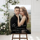 Elegant photo wedding welcome acrylic sign featuring "Welcome" displayed in a white calligraphy script overlay and a vertical engagement photo. Personalize the modern wedding welcome acrylic sign with your names and wedding date in bold, white lettering. The photo wedding sign coordinates with our Modern Elegance wedding collection.