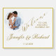 Elegant custom photo wedding welcome sign featuring gold lettering and a photo template for uploading your desired photo of the happy couple -- a gracious way to welcome your guests. Modern script spells out the word "Welcome" and you personalize with bride and groom's names for a sign that is uniquely yours. The sign may be placed on an easel or hung on a wall. For any design question or additional customization and / or matching items, just send a chat or an email to charmdesignstudio@rcn.com and we'll be delighted to assist.
