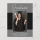 Beautiful 2 photo, graduation announcement postcards. Featuring modern text with elegant script. The graduates photo is thinly edged in a silver gray border and decorative wavy trim. The design is complimented with a background in shades of platinum gray and regal black. The back of the card offers a personalized announcement text space for that special graduate and a second grad photo under a soft misty layer creating a chic backdrop. The perfect card to share this special occasion.