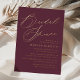 Simple bridal shower invitations featuring "Bridal Shower" displayed in a gold foil calligraphy script with a wine-purple background. Personalize the purple and gold foil bridal shower invitations with the bride-to-be's name and shower details below. The modern bridal shower invite reverses to display a solid purple background.