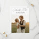 Featuring your most romantic photo, bathed in sunset warmth and accompanied by delicate handwritten calligraphy, this modern yet timeless design sets the perfect tone for your wedding day. With a touch of rustic charm and elegant script, it's ideal for boho brides, country celebrations, or anyone drawn to the quiet beauty of nature and love.