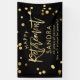 Modern Happy Retirement Custom Name Banner with festive printed gold confetti Illustrations. Personalize with your name and another 1 or 2 lines of custom text as well as the option to change the background to another color in the design tool under "customize further". This is the gold on black version.