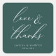 Modern Elegant Script Teal Love & Thanks Square Sticker