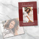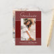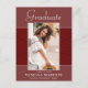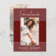 Beautiful 2 photo, graduation announcement postcards. Featuring modern text with elegant script. The graduates photo is thinly edged in a white border and decorative wavy trim. The design is complimented with a background in shades of red and terracotta. The back of the card offers a personalized announcement text space for that special graduate and a second grad photo under a soft misty layer creating a chic backdrop. The perfect card to share this special occasion.