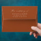 Simple, modern wedding envelopes featuring "the wedding of" displayed in an elegant white calligraphy script on a terracotta background. Personalize the envelope flap with your names and return address.
