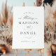 Modern Elegant Script Wedding Welcome Sign features unique calligraphy script paired with stylish type. The black and white color scheme is perfect for any event, formal or casual.