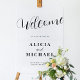 Modern minimalist black and white simple classic wedding welcome sign printable poster template featuring a handwritten bold chic calligraphy script. +++++++++++++++++ Ideal for elegant classy stylish budget affordable wedding celebration or anniversary.