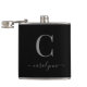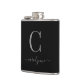 Chic Modern Elegant Silver Black Monogram Script on a chic Black Flask. Easy to customize with your own name and details. Perfect for your luxury lifestyle! Please contact us at cedarandstring@gmail.com if you need assistance with the design or matching products.