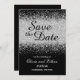 This elegant and modern 'Save the Date' features silver glitter confetti dispersing into a pure black background. You can fully personalize it by going to the customize menu. This is part of a beautiful wedding suite that includes an invitation, a menu and many other essentials.