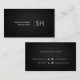 Modern Elegant Simple Plain Black Sleek Professional Business Cards. Including a simple monogram logo you can edit. Black trendy metallic background with bright stylized icons.