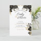 Modern, Elegant Stylish RSVP Black Flowers Custom Invitation
