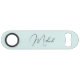 Create your own custom, personalized, modern elegant black calligraphy typography script font monogrammed on aqua blue background, trendy chic stylish cool professional extra durable stainless steel speed bottle opener bar key featuring a length and design to open bottles with speed and ease. Simply type in your name / family name, to customize. Makes a great gift for birthday, christmas, holidays, wedding, graduation, fathers day, friendship day, special tastings, milestone birthdays, and more, for your loved ones, mom, dad, girlfriend, boyfriend, husband, wife, couples, newlyweds, beer lovers, bartenders, men, women, him, her, friends and family.