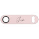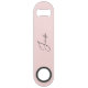 Create your own custom, personalized, modern elegant black calligraphy typography script font monogrammed on light pastel pink background, trendy chic stylish cool professional extra durable stainless steel speed bottle opener bar key featuring a length and design to open bottles with speed and ease. Simply type in your name / family name, to customize. Makes a great gift for birthday, christmas, holidays, wedding, graduation, fathers day, friendship day, special tastings, milestone birthdays, and more, for your loved ones, mom, dad, girlfriend, boyfriend, husband, wife, couples, newlyweds, beer lovers, bartenders, men, women, him, her, friends and family.