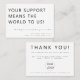 Featuring a minimalist and elegant design, this card is tailored for small businesses to express thanks for purchases and orders. Use the space to include your logo, a discount message, or a gentle nudge to follow your social media pages. Ideal for enhancing the personal touch in your packaging, these thank-you cards are a thoughtful way to build stronger customer relationships. Make your customers feel appreciated—order your custom cards today!