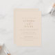 Plain white envelopes are included with paper invitations and will come to fit the invitation size you select. If you don’t need the envelopes, you may choose to not receive them by selecting the dropdown below "Envelopes" and choosing "None." If you’d like to have a design on your envelopes, you can browse all of these available envelopes to find the design that complements your Modern Elegant Tan Wedding Invitation.