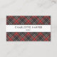 A chic personalized black red and white plaid tartan square-patterned business card featuring an elegant charcoal grey border with a white nameplate. The nameplate can be used for your company or name details. The reverse has a crisp white background with contact details set in a slate grey text. Designed by Thisisnotme©