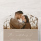 Elegant all-in-one wedding invitation featuring your engagement photo at the top of the design. Your names and wedding details are displayed in white text with modern calligraphy script accents on a taupe background. The design features a detachable RSVP card below that can be mailed as a postcard back to you. Designed to coordinate with our Modern Elegance wedding collection.