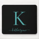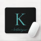 Modern Elegant Teal Aqua Monogram Script Black Mouse Pad