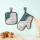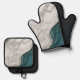 Modern Elegant Teal Gray Marble Oven Mitt & Pot Holder Set