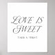 Add a refined touch to your dessert table with this Modern Elegant Typography Love is Sweet sign. The design combines black calligraphy script with classic serif lettering on a white background for a timeless look. Personalize the text to fit your event. A versatile sign that’s perfect for weddings, bridal showers, rehearsal dinners, and engagement parties.