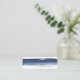 Modern and creative mini business card featuring a simple design with a navy blue watercolor brushstroke across the middle, over a white background. Your name overlaps in a handwritten font and below is your title in a sans serif font. The backside has your contact information. These unique and artistic business cards are great for an interior designer, personal trainer, coach and more.