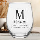 Modern Elegant Wedding Custom Monogram Name Date Stemless Wine Glass