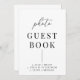Modern, elegant wedding sign for your photo guestbook features a minimalist black and white design with modern lines, an elegant script font, and classy serif font.