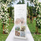 Easily personalize your wedding decor with this wedding welcome banner. Features your custom photo background and 4 photo collage with minimal elegant calligraphy design in black and white color.