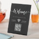 Modern Elegant Welcome Script WIFI QR Code Black Pedestal Sign